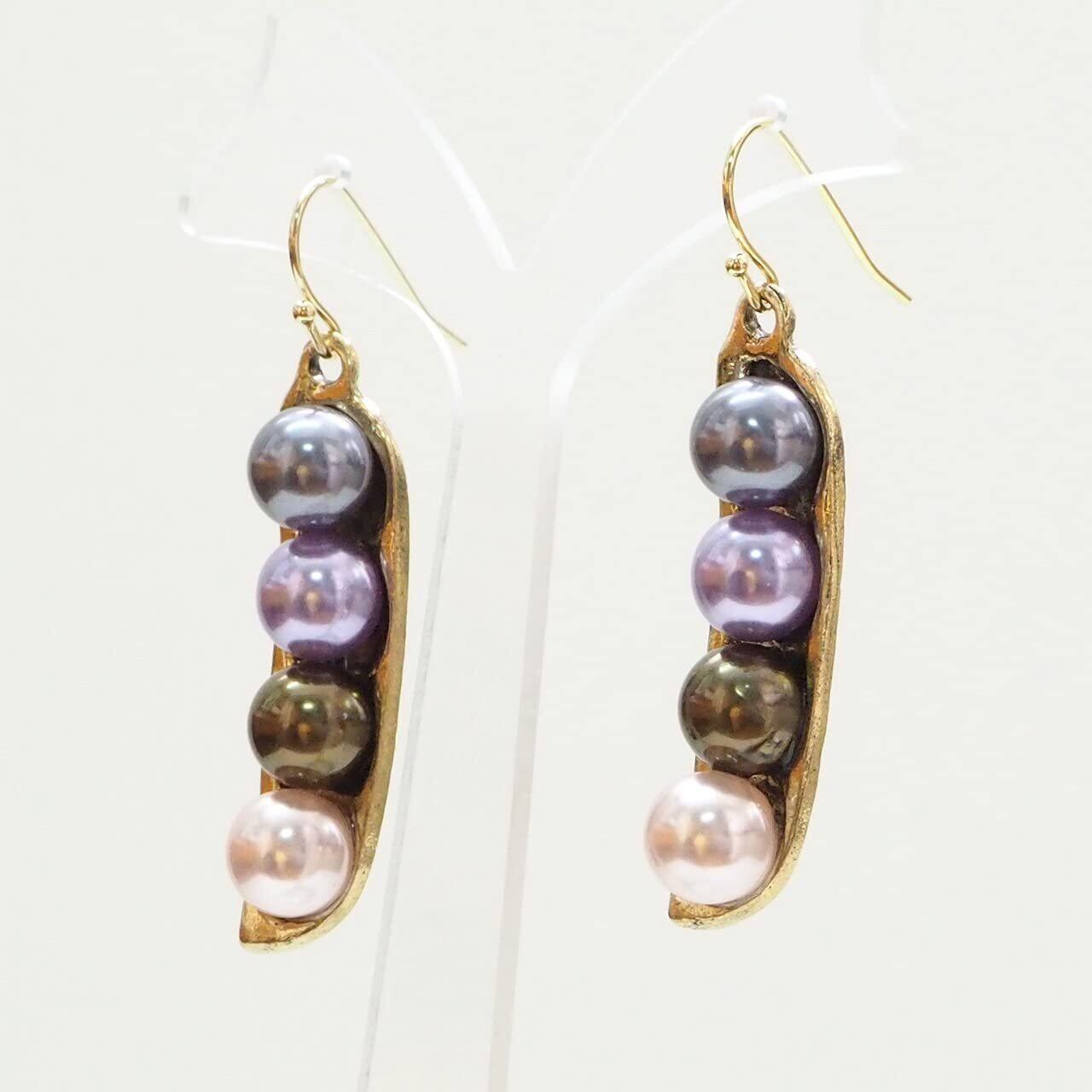ブロンズカラーのリアルなサヤに艶やかな8ミリパールが4つ並んでいます。