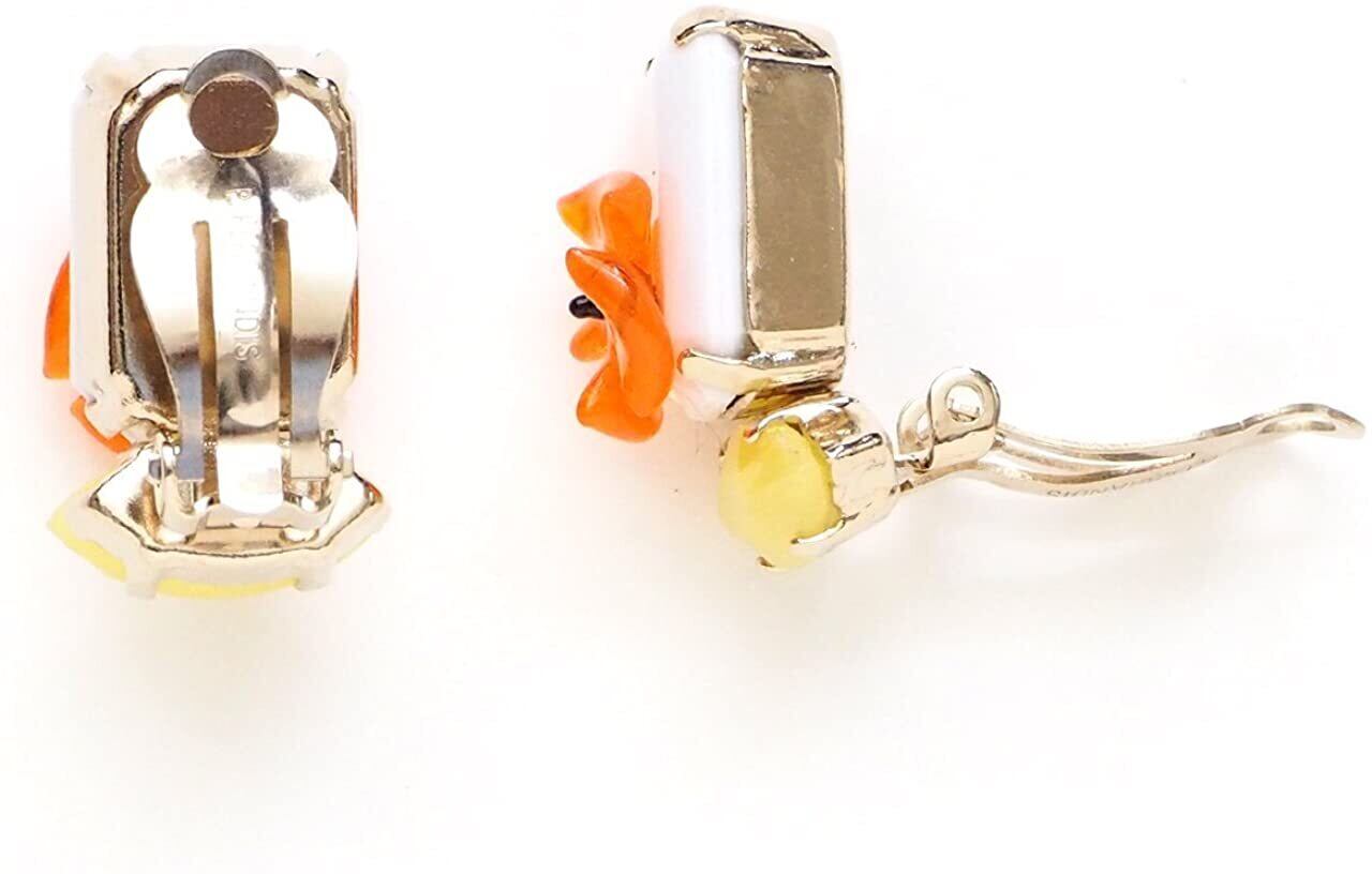 約1.1.5×1.2センチのチョークホワイトのガラスの上に直径約1.2センチの樹脂製の花が載ったイヤリング