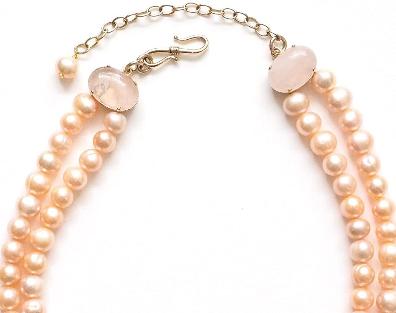 ネックは淡いピンク色の淡水パールです 。